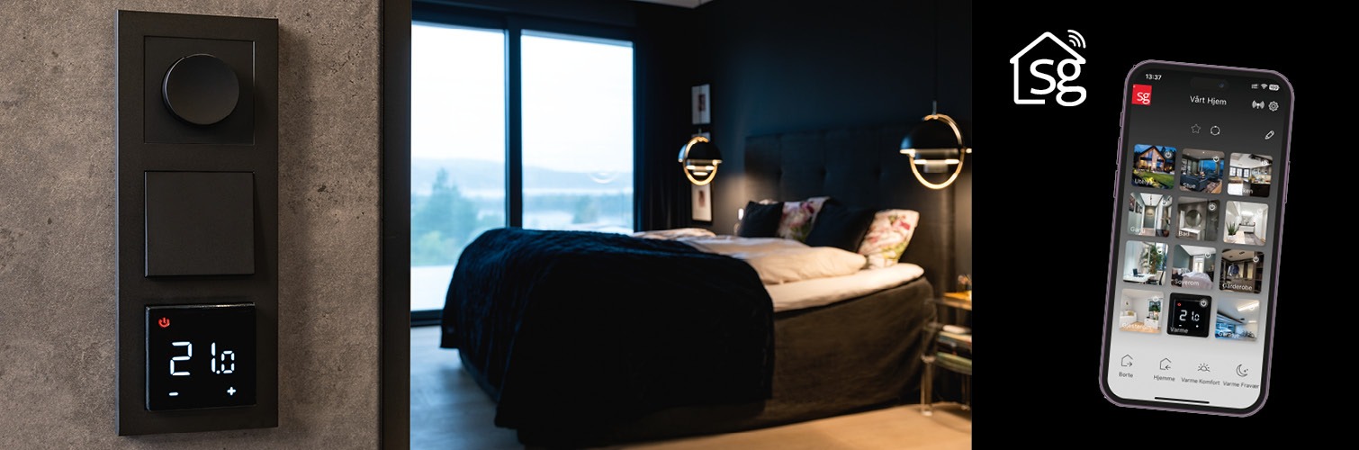 Uanset om du sidder i sofaen eller er på farten, kan du med SG Smart-appen justere belysning og gulvvarme med det samme for at opnå total komfort og fleksibilitet.